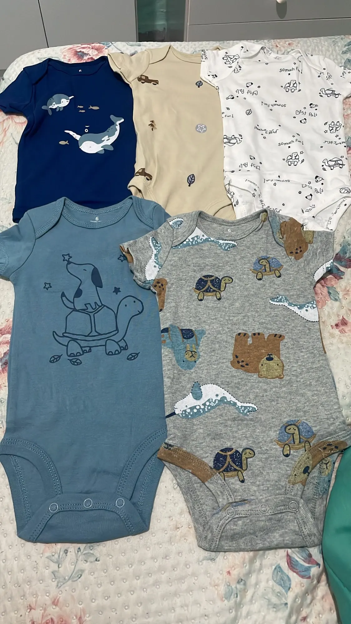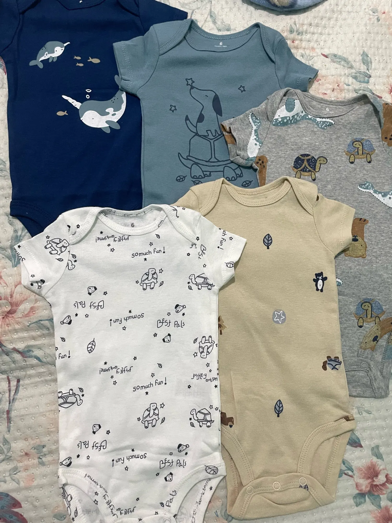 Easy Diaper Changes: The onesies in the set are designed with snap closures at the bottom, allowing for quick and easy diaper changes without hassle.