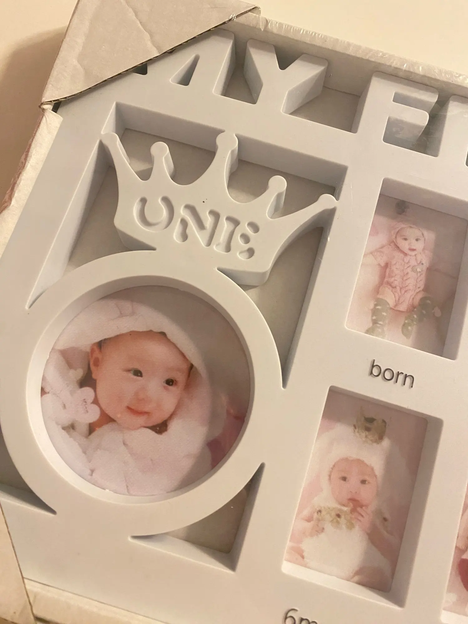 Elegant Design: Crafted with a timeless, elegant design, this photo frame complements any nursery or home decor. The neutral colors and modern layout make it a beautiful addition to any room, perfect for showcasing your baby’s monthly pictures.